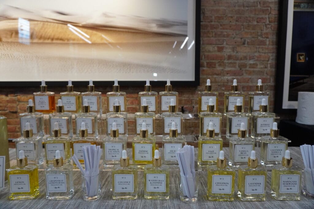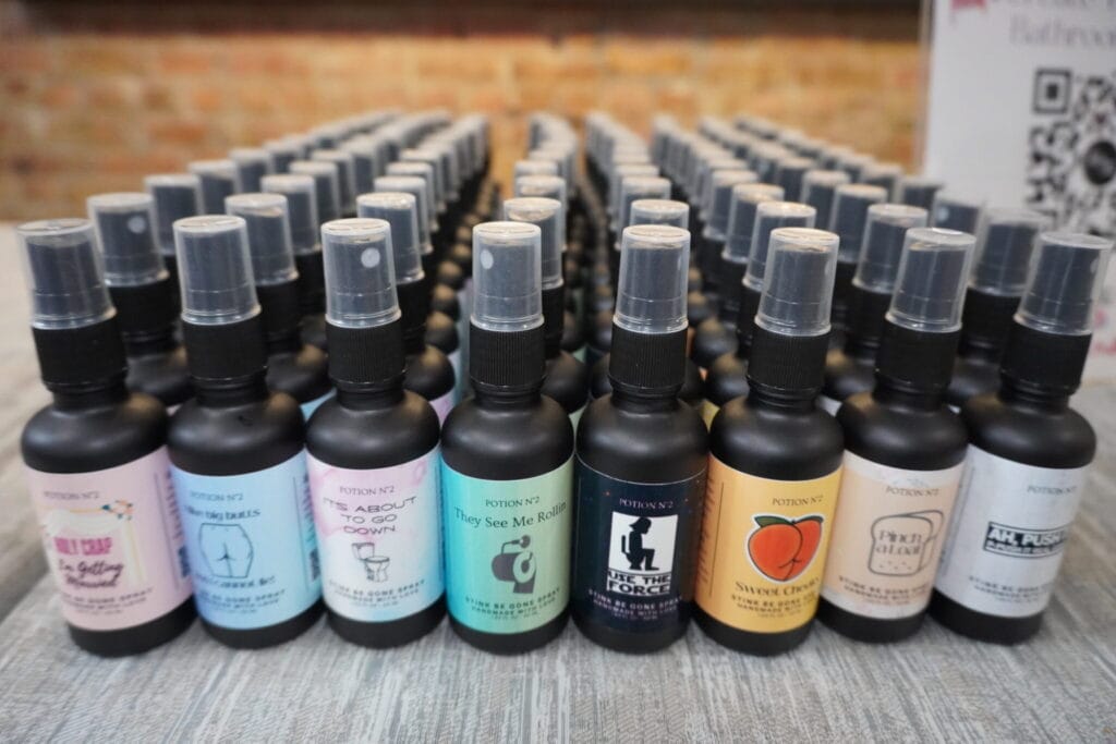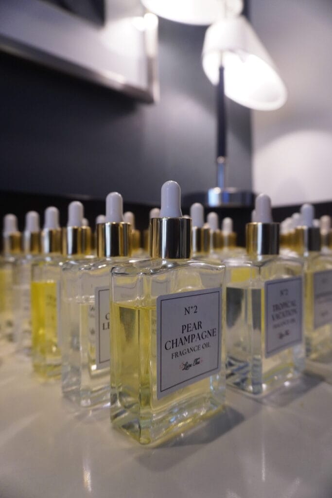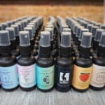 - Natural essential oils, perfumer’s alcohol, and spray bottles